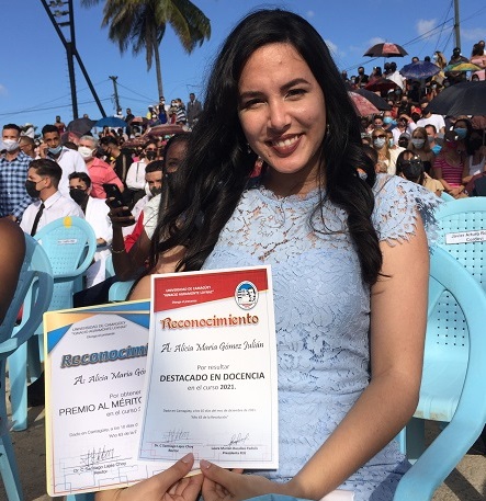“Recibir el premio de Estudiante Investigador otorgado por el CITMA es un gran orgullo para mí. Es un reconocimiento al trabajo investigativo desarrollado durante cinco años de carrera universitaria. La participación en eventos y las publicaciones que son premiadas hoy, me permitieron realizar un pequeño aporte científico a la sociedad y enriquecieron mi formación profesional como ingeniera”, aseveró Gómez Julián, hoy profesora de la carrera de Química.