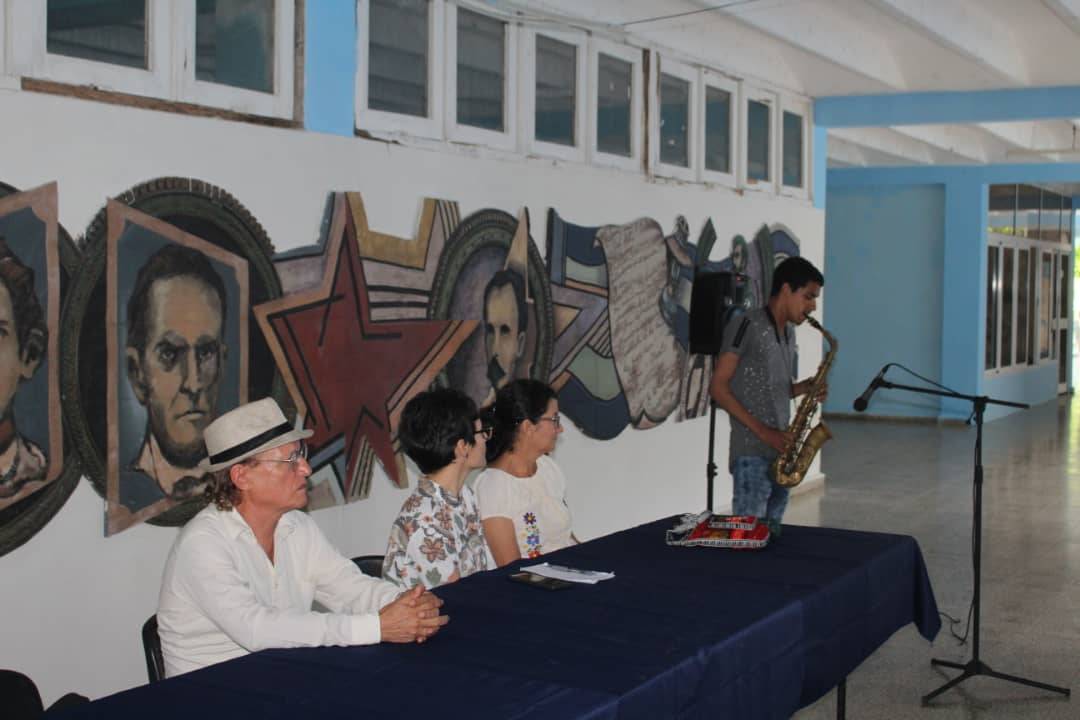 alumnos y profesores de la Facultad de Ciencias Pedagógicas y el homenaje de esta casa de altos estudios como reconocimiento a su quehacer artístico, de manos de la vicerrectora Dra. C. Yoesdelys Cruz Acosta y la decana de la facultad, Dra. C. Laritza del Risco.