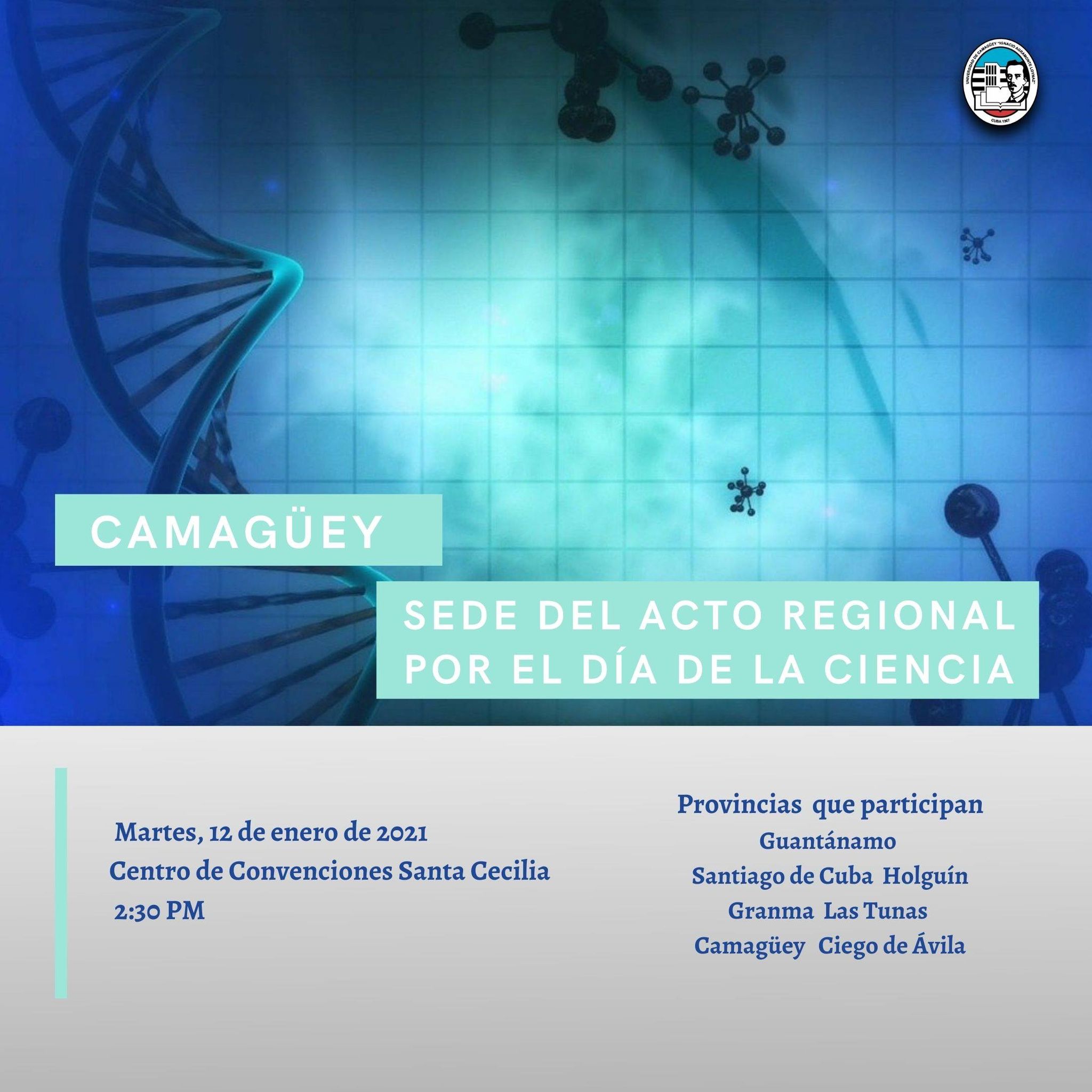 Por sus resultados, la Universidad de Camagüey organizará el acto por el Día de la Ciencia Cubana en la región Centro Oriental del país, que comprende desde Guantánamo hasta Ciego de Ávila. El mismo se efectuará el día 12 de este mes a las 2:30 de la tarde en el Centro de Convenciones Santa Cecilia. … Sigue leyendo Universidad de Camagüey sede del acto por el Día de la Ciencia Cubana en región Centro Oriental